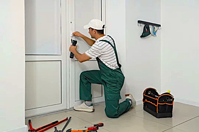 Técnico de Cerrajería Says-Lock realizando reparación de puerta en Granollers y Les Franqueses del Vallès.