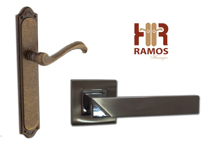 Manillas Herrajes Ramos con variedad de acabados: desde el cuero avellana hasta el cromo satinado con roseta cuadrada.