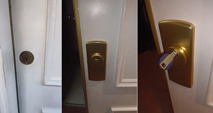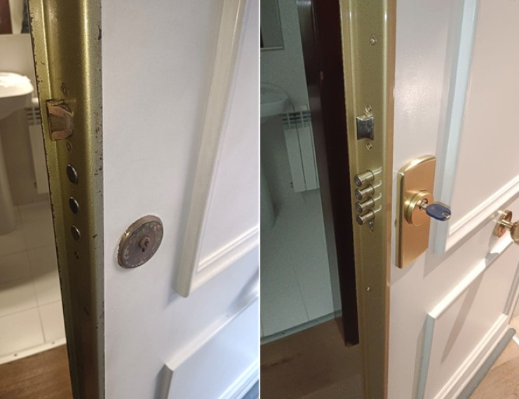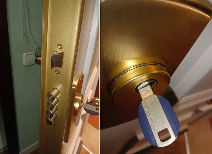 Cerrajería Says-Lock eliminó el peligro de una cerradura Arcu de gorjas en Sant Cugat, instalando sistema Ezcurra 5000, cilindro ABUS Magnet y escudo Disec. Máxima protección.