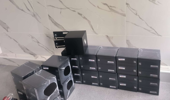 Preparación del Soporte: Dado que la instalación se realizó sobre una superficie cerámica de gran formato, la precisión en el taladrado fue crítica para evitar fisuras. Se niveló el área para asegurar una alineación perfecta de las agrupaciones.